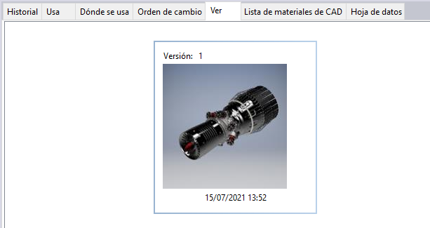 El valor por defecto del estilo de vista preliminar es una vista de carrusel de miniaturas, lo que permite recorrer cíclicamente las versiones históricas del archivo en Vault Basic y las revisiones históricas del archivo en Vault Professional. Se muestra la versión del archivo o una revisión en la parte superior de cada miniatura y la última fecha de check-in en la parte inferior.