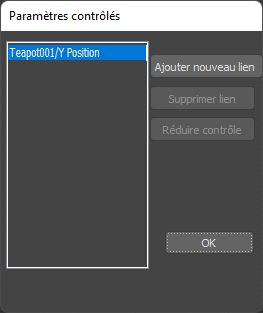 Cliquez avec le bouton droit de la souris sur un contrôleur contrôlé dans la hiérarchie Vue piste pour afficher la boîte de dialogue Paramètres contrôlés. La fenêtre de liste affiche les pistes assignées.