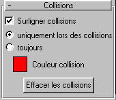 Si vous procédez à une nouvelle résolution d'une partie de la simulation, de nouvelles informations de collision relatives aux nouvelles images seront fournies. Toutefois, si vous déplacez un représentant manuellement, les informations de collision resteront inchangées. Il est en outre possible qu'elles soient incorrectes. Dans ce cas, utilisez Effacer les collisions afin de corriger les informations de collision.