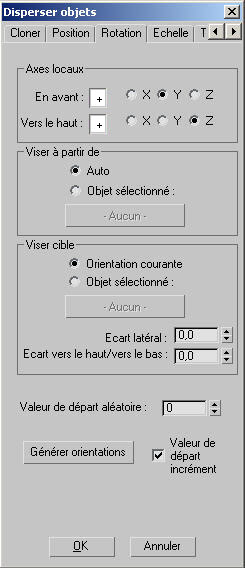 - Indique une valeur de départ permettant de rendre aléatoires les orientations des objets, en fonction des paramètres Ecart.
