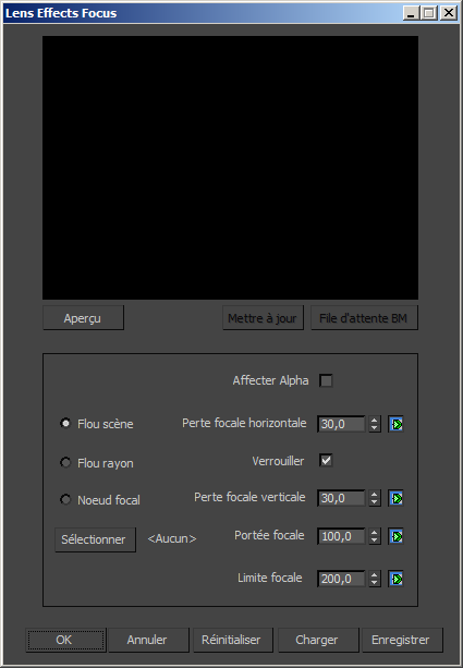 Les paramètres de Lens Effects Focus par défaut sont alors rétablis.