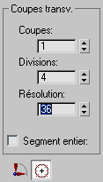 Deux groupes de fonctions permettant de définir des paramètres figurent à droite de l'éditeur de renflements. Utilisez le groupe de fonctions Coupes transv. pour modifier les paramètres de coupe d'un segment donné.