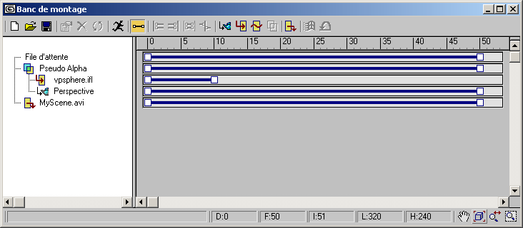 Un autre processus courant pour lequel le banc de montage est utilisé consiste à convertir une série de rendus sous forme d’images en animation. Pour réaliser cette tâche, vous devrez utiliser un fichier IFL.