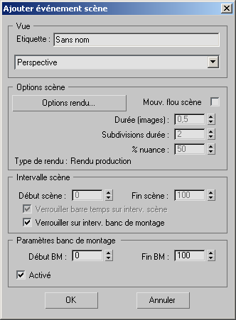 Cliquez sur OK pour fermer la boîte de dialogue Ajouter événement scène.