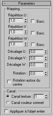 Spécifie si la transformation doit être appliquée à un canal de mapping ou à un canal couleur sommet, ainsi que le canal à utiliser. Pour plus d’informations sur ces canaux, reportez-vous à la rubrique Modificateur texture UVW.