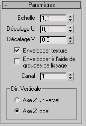 Spécifient respectivement les décalages horizontal et vertical. Cette option est uniquement disponible lorsque Envelopper texture est désactivé.
