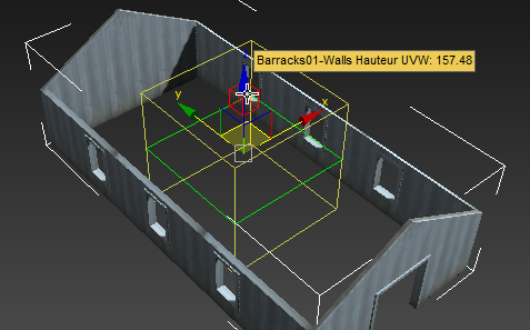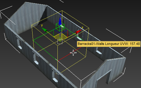 Des arêtes vertes s'affichent le long des bords du gizmo du modificateur Map UVW. L'arête devient rouge lorsque le curseur se trouve au-dessus.