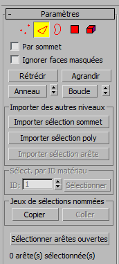 Chaque sous-objet tel qu'un sommet, une arête et une face possède un ID unique. Celui-ci s'affiche dans la partie inférieure du panneau déroulant Sélection, dans le groupe de fonctions Modifier, lorsque le sous-objet est sélectionné.