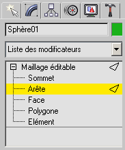 Modifiez le niveau de sous-objet actif en utilisant l’affichage Pile de modificateurs dans le groupe de fonctions Modifier.