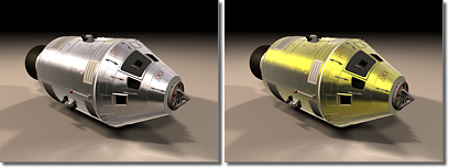 La modification des couleurs spéculaires est reflétée sur la surface brillante du vaisseau spatial.