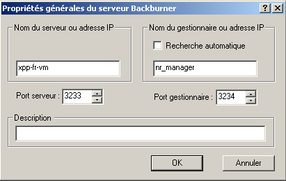 Boîte de dialogue Propriétés générales du gestionnaire Backburner.