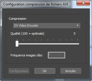 3ds Max ouvre une boîte de dialogue de configuration de la compression des fichiers AVI.