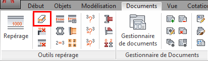 le groupe de fonctions Outils repérage, le bouton mis en surbrillance (Affichage de l'interrupteur à bascule SP/MP) permet de basculer entre les pièces secondaires et les assemblages. En fonction de la position du commutateur, les outils de numérotation font référence aux pièces secondaires ou aux assemblages.