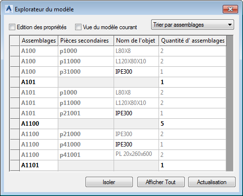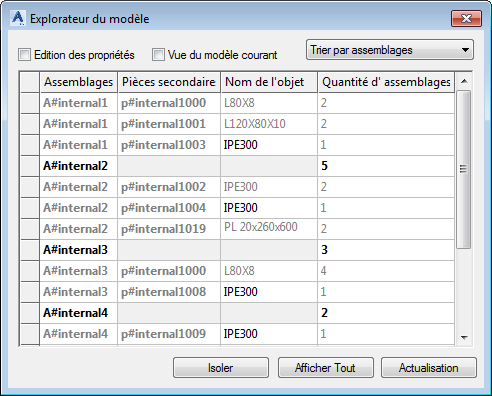 Remarque : Les soudures et les boulons peuvent constituer un assemblage de chantier ou d'atelier. Les assemblages d'atelier permettent de créer des assemblages dans le modèle 3D, au contraire des assemblages de site.