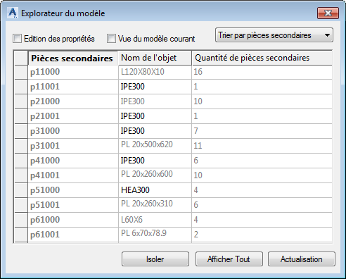 Cochez la case Explorateur du modèle pour voir les modifications reflétées pour vos pièces secondaires et assemblages :