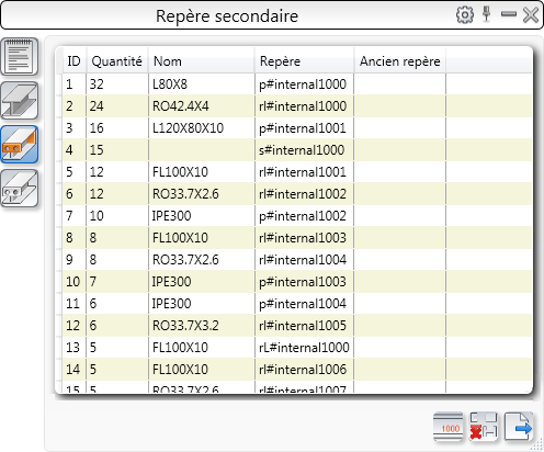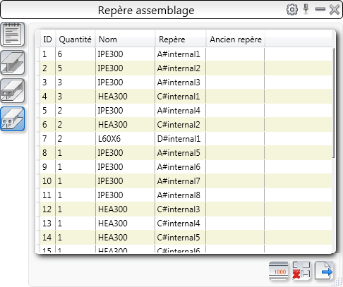 Le résultat de la numérotation des pièces et des assemblages s'affiche dans la palette Repérage :