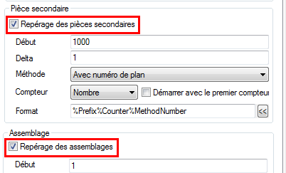 - Dans la boîte de dialogue Repérage, cochez Repérage des pièces secondaires et Repérage des assemblages :