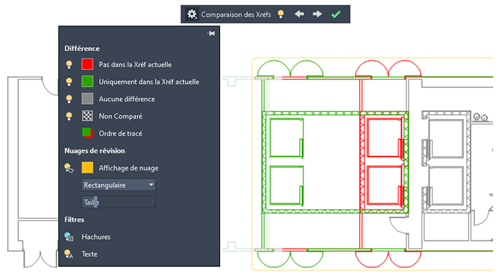 Les améliorations de la fonction de comparaison de Xréfs d'AutoCAD 2021 s'appliquent également aux dessins AutoCAD Architecture contenant des objets Architecture.