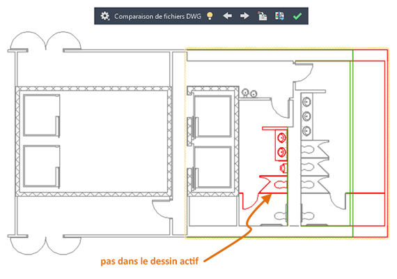 AutoCAD Architecture qui apparaissent comme des différences après la comparaison entre deux dessins.