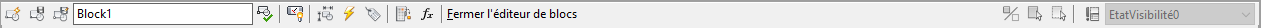 La barre d'outils Editeur de blocs s'affiche lorsque le ruban est inactif. Elle s'affiche également lorsque vous accédez à l'éditeur de bloc alors que le ruban est fermé.