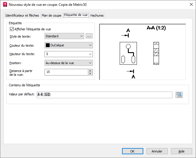 Onglet Etiquette de vue (Gestionnaire de styles de vue en coupe)