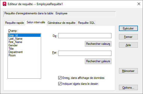 Ouvre la boîte de dialogue Affichage des données et Options de requête.