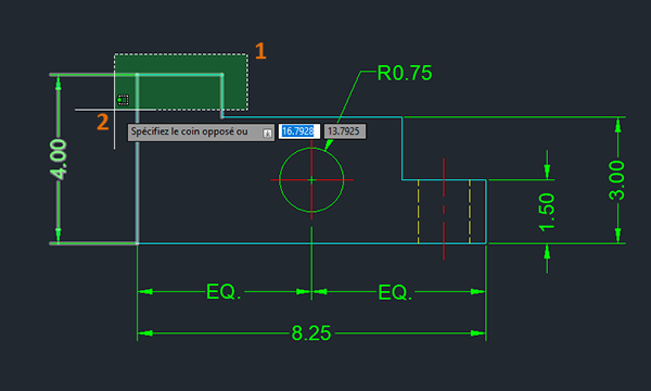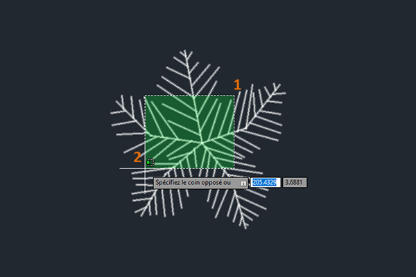 L'utilisation d'une méthode de sélection d’intersection permet non seulement de sélectionner un ou plusieurs objets à étirer, mais, plus important encore, de délimiter tous les points à repositionner.