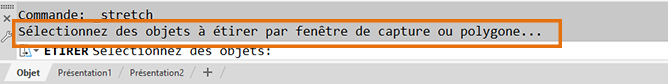 Pour que la commande ETIRER fonctionne correctement, les objets doivent être sélectionnés à l'aide d'une fenêtre de capture ou d'un polygone de capture.