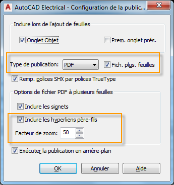 Assurez-vous d'avoir coché les cases Fich. plus. feuilles et Inclure les hyperliens.