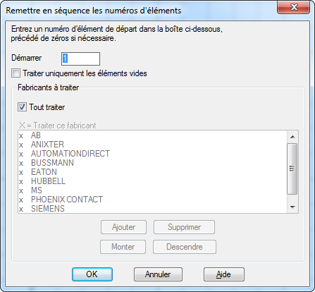 Plusieurs propriétés du projet ont une incidence sur la numérotation des éléments. Veillez à définir ces propriétés en fonction de vos préférences, avant de procédez à la remise en séquence des numéros d'éléments.