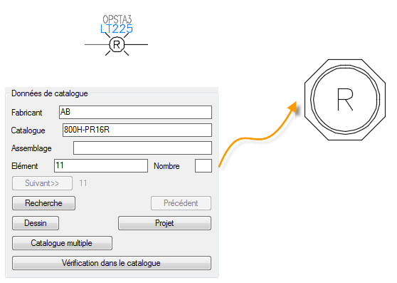 Jeu d’outils AutoCAD Electrical utilise l'affectation de catalogue du composant schématique pour trouver l'encombrement du panneau approprié.