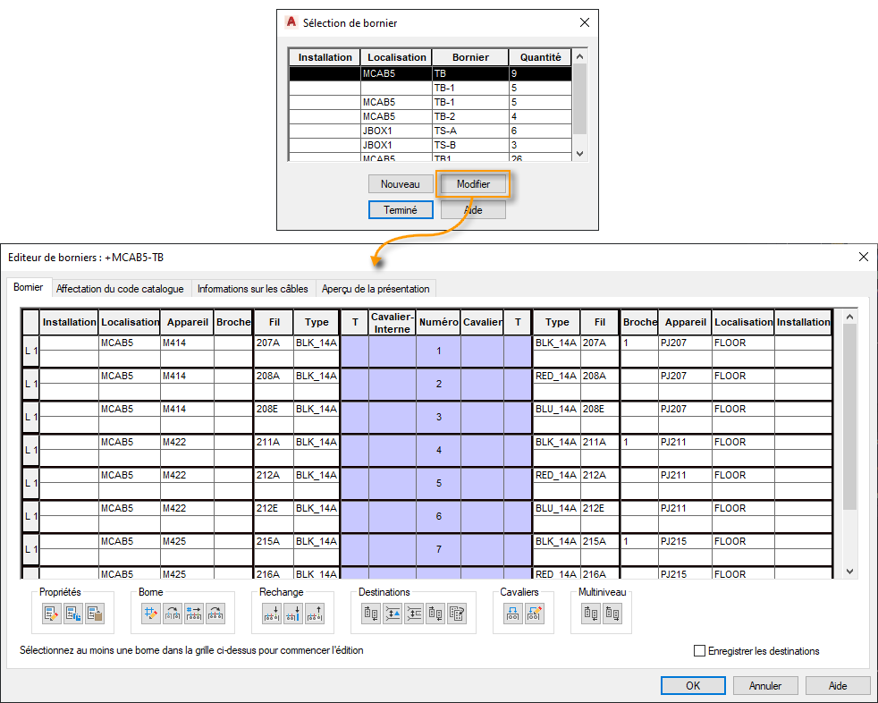 L'éditeur de borniers vous permet de gérer des borniers entiers au lieu d'une borne à la fois. Trouver
