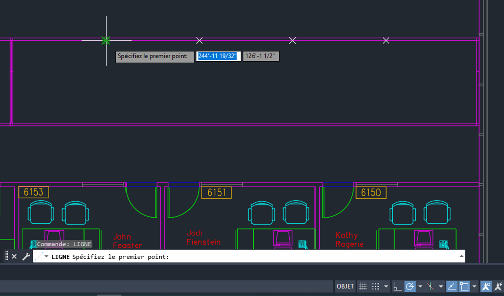 Maintenant, nous pouvons facilement déterminer où nos murs doivent aller. Utilisez la commande LIGNE pour créer un mur, puis la commande COPIER pour dupliquer un mur à l’emplacement de chaque point.