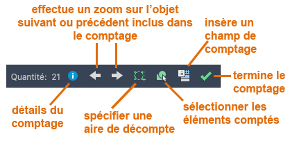 ELEMENTQUANTITEPRECEDENT : effectue un zoom sur l'objet précédent inclus dans le décompte.