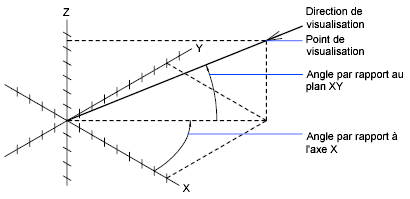 Vous pouvez définir une direction de visualisation en entrant les valeurs de coordonnées d'un point ou les mesures de deux angles de rotation.