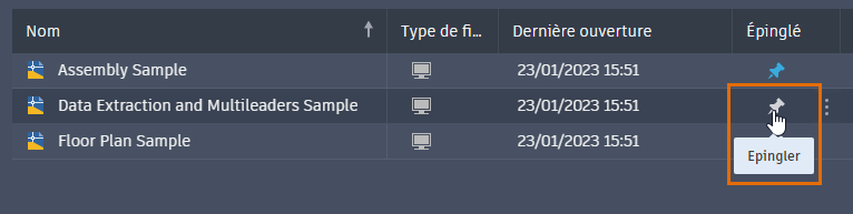 Lorsque vous épinglez un fichier, il reste affiché en haut de la liste jusqu'à ce qu'il soit détaché.
