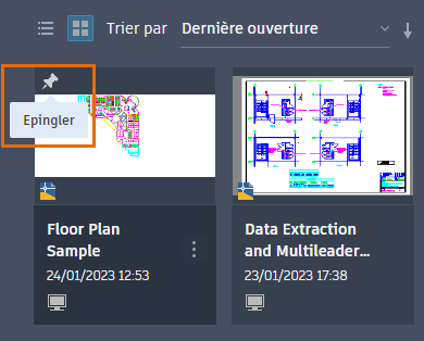 - Vue sous forme de grille : déplacez le curseur vers le coin supérieur gauche de la miniature du fichier jusqu'à ce que l'icône de punaise s'affiche. Cliquez pour épingler le fichier.
