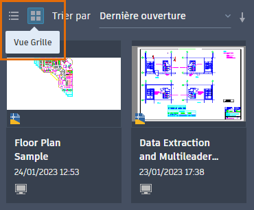 - Au-dessus des documents, choisissez une vue sous forme de grille, qui affiche des miniatures et du texte, ou une vue sous forme de liste, qui affiche du texte uniquement.
