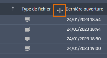 Faites glisser la barre verticale entre les en-têtes de colonne pour ajuster la largeur des colonnes.