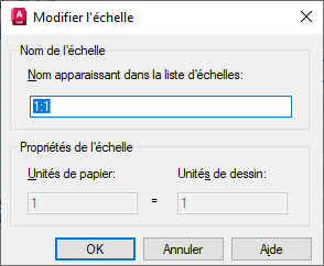 Entrez un nom numérique ou une description. Par exemple, dans un dessin architectural utilisant une échelle anglo-saxonne type, vous pouvez entrer soit 1"=4', soit 1:48.