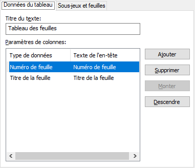 Permet de modifier le texte du titre de chaque colonne dans le tableau des feuilles.