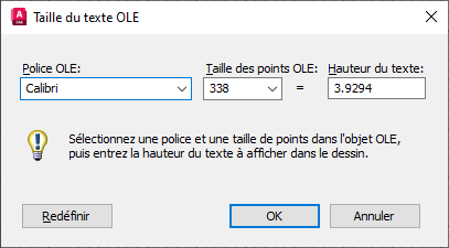Restaure l'objet OLE à sa taille d'origine lors de son insertion dans le dessin.