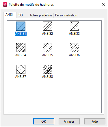Organise les motifs sur quatre onglets, les images étant agencées par ordre alphabétique. Cliquez sur une image pour sélectionner un motif, puis cliquez sur OK.