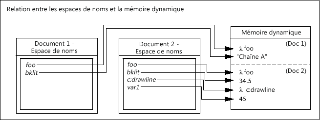 The concept of namespaces was introduced to prevent applications running in one drawing window from unintentionally affecting applications running in other windows. Each open AutoCAD drawing document has its own namespace. Variables and functions defined in one document namespace are isolated from variables and functions defined in other namespaces.