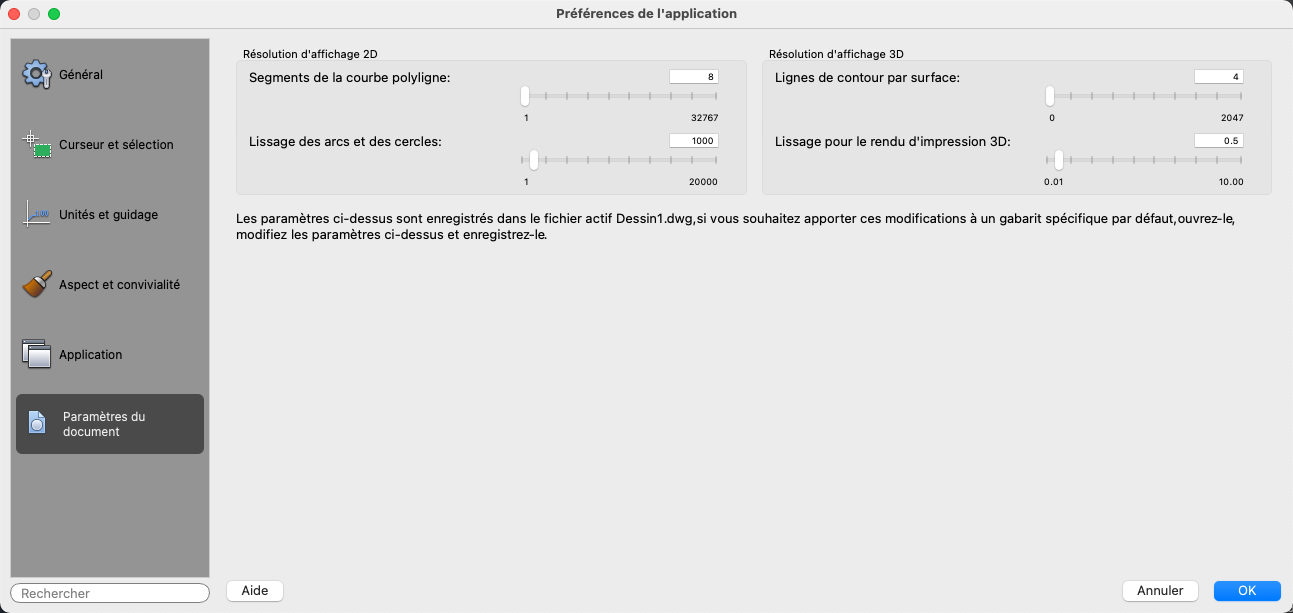 Définit la résolution des objets dans la fenêtre courante. (Commande RESVUE)