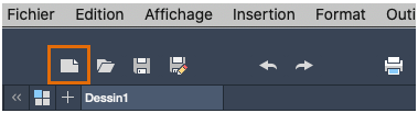 Le nouveau dessin, Dessin1, commence dans un nouvel onglet situé juste au-dessus de la zone de dessin. Vous pouvez cliquer sur les onglets pour basculer entre plusieurs fichiers de dessin ouverts. Cliquez sur le signe Plus (+) pour commencer un nouveau dessin à partir du gabarit par défaut.