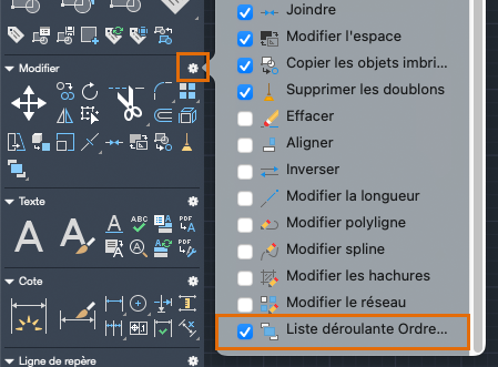 Vous pouvez accéder à diverses options d'ordre de tracé dans le groupe de fonctions Modifier du jeu d'outils. Cliquez sur