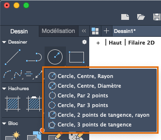 D'autres options de cercle sont disponibles dans la liste déroulante :