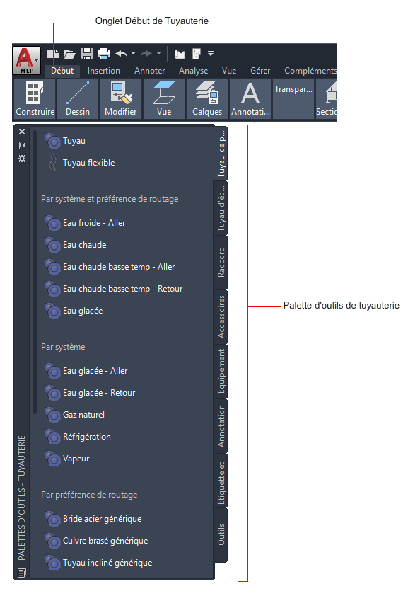 Exemple d'espace de travail Tuyauterie