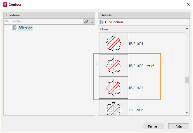 La nouvelle norme JIS B 1603 remplace la norme JIS B 1602 du jeu d’outils AutoCAD Mechanical 2024.